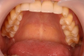 初めは矯正歯科希望でいらしてくださった50代の患者様です。 もちろん矯正治療する選択肢もありましたが、歯が欠けていることと年齢的なこととを考えて、セラミックにて治療するプランをご提案しました。 奥歯の金属部分もあわせて治療を行いましたが、治療期間は約1.5ヶ月とスピーディに終了しました。