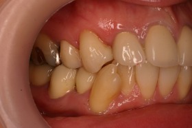 今まで気になっていた前歯の差し歯や奥歯の銀歯をセラミックにて治療しました。 噛みやすさや患者さんの経済状況から一気に治療するのではなく、段階的に治療しました。 そのため実際には目立ちにくい、上の奥歯などはまだ銀歯になっている状態です。